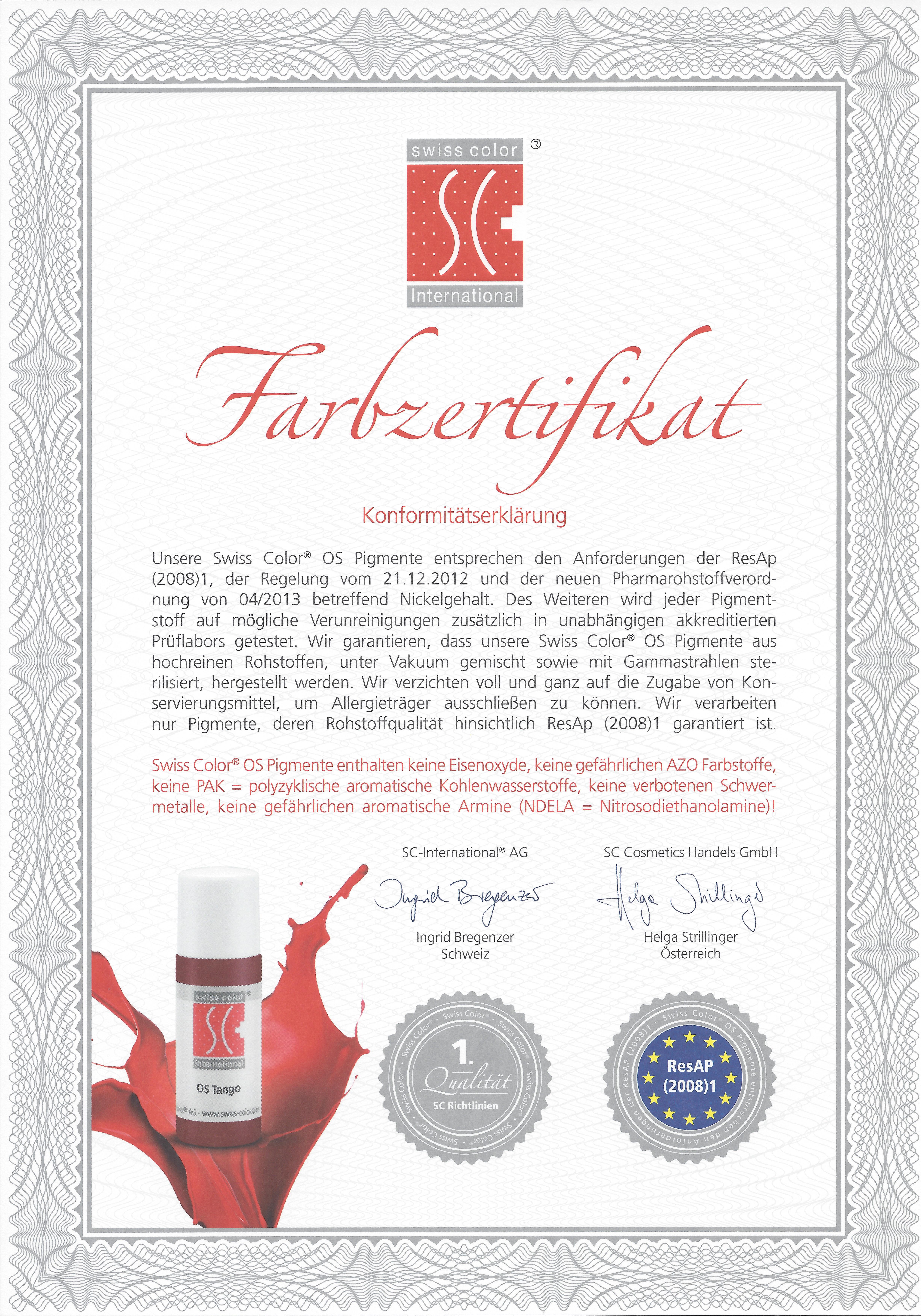 - Farbzertifikat