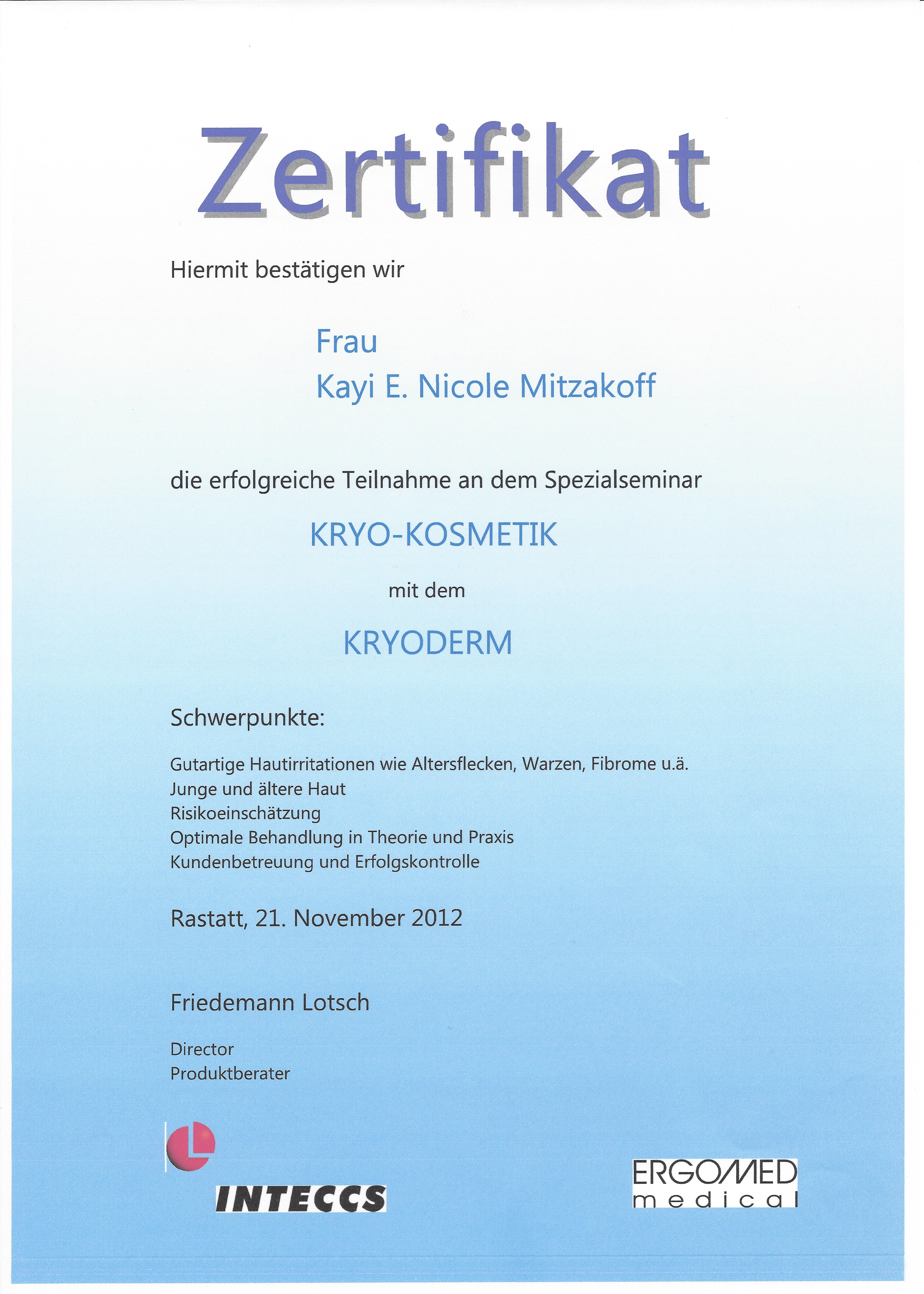 - Zertifikat Kryoderm Kryokosmetik